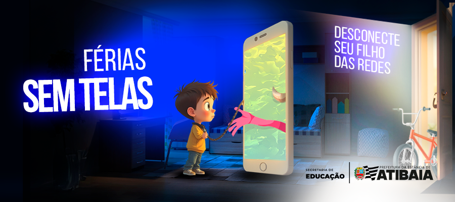 A Prefeitura lança no mês de julho a campanha “Férias sem Telas” para abordar a importância de promover o uso consciente das telas – sejam dos celulares, dos computadores ou TVs. Estar na frente desses aparelhos por longos períodos de tempo pode ter efeitos nocivos à saúde de qualquer pessoa, independentemente da idade, no entanto, as crianças fazem parte de um público considerado um dos mais impactados pelo uso excessivo de telas, motivo pelo qual a campanha foi lançada pela Secretaria da Educação.